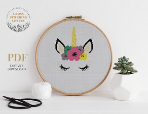 Cute unicorn cross stitch pattern! This cool and fun pattern can be a great and unique gift or awesome baby nursery room decoration!